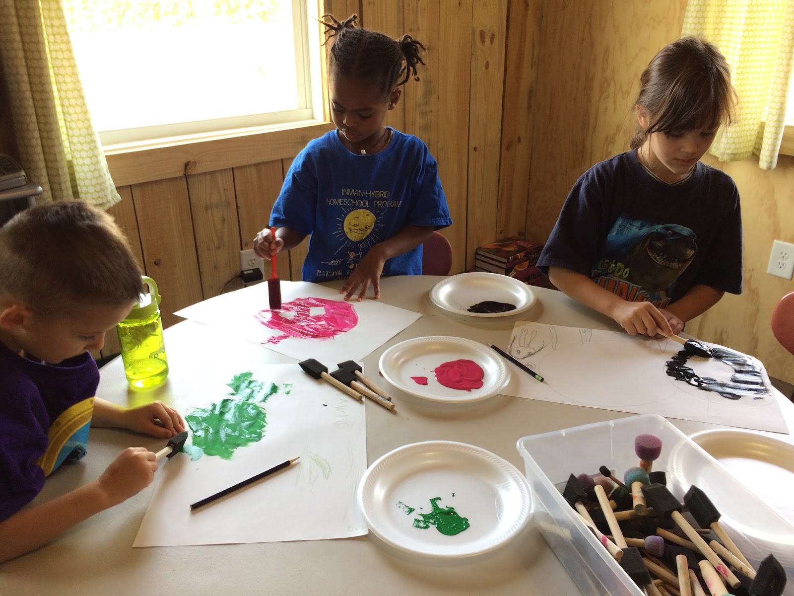 The classes continued to work on their fall leaf project. Not only is this a fun art project, but it's also a lesson in learning to follow directions and a lesson in patience, as well! The class glued the sticks onto their paintings, and they will compile them into a single work of art next week.